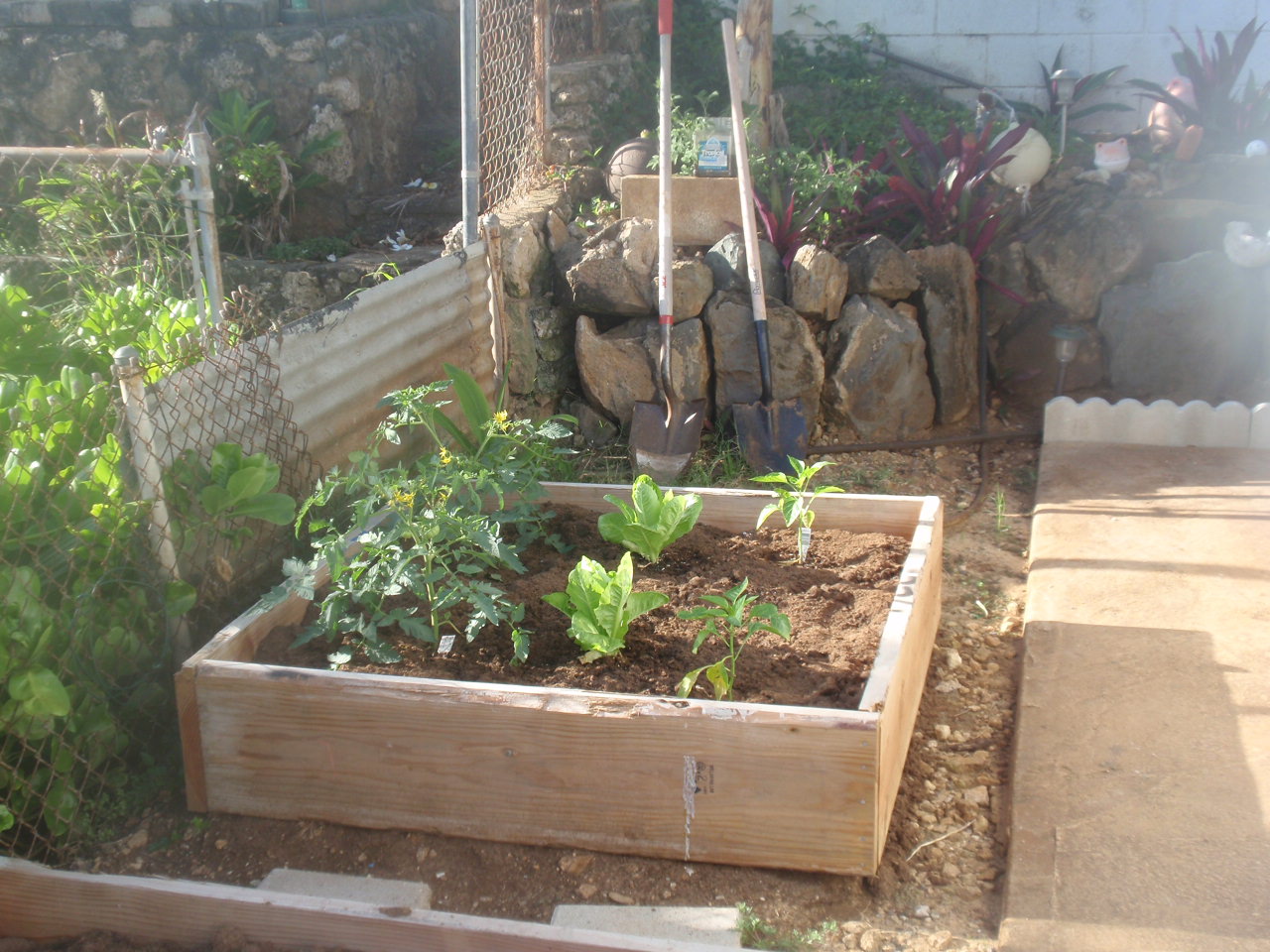 Last fall sometime I wrote a small note in our journal about watching the purple bud on a banana tree turn into a bunch of bananas. Well one of the 2 trees that I transplanted from the Stake farm last September 11th now has it’s own little purple bud forming. I am going to take a picture everyday, while the bananas are forming. It has been amazing to watch how large some of the bunches of bananas get. I have not been to the Stake Farm very much lately, but the banana trees that we cleaned up around last September are producing bananas. There is always a bunch to look at somewhere on the farm. Just across the street, the neighbor has a row of about 5 banana trees and there are 2 huge bunches on 2 of those trees. We have watched those for quite some time and the purple bud is still there but hasn’t produced any more bananas for more than a foot. People that raise bananas cut the bud end off when it starts to not produce anymore bananas. The bud has gone from coming out of the top of the tree and going straight up, to hanging down where it is more visible in 3 or 4 days. It looks to be about 2 inches in diameter in what will become the stock. The bud itself is over 1 foot long. The bunches of bananas will start to form under the first layer of the bud. That top layer will just dry up and fall off after the flowers have been pollinated and the banana starts to form. There will be 10 or 12 bananas on that layer and then the bunch starts to look like a twirl as it continues to grow. They are an apple banana variety. They don’t get quite as big (long) but are bigger around, and they still go from green to yellow. They have the same look as they are growing though. It is really interesting to watch the bananas form. They are about as big as your little finger and have a large yellow flower on the end of what will become the banana. As the flower is fertilized, the flower dries up and the finger sized banana starts to grow. Another day or so and you have another layer come out from under the next layer of the purple bud and another 10 or 12 bananas appear. I will give you a head count as they appear. Eileen is already planning things to do with our banana money.